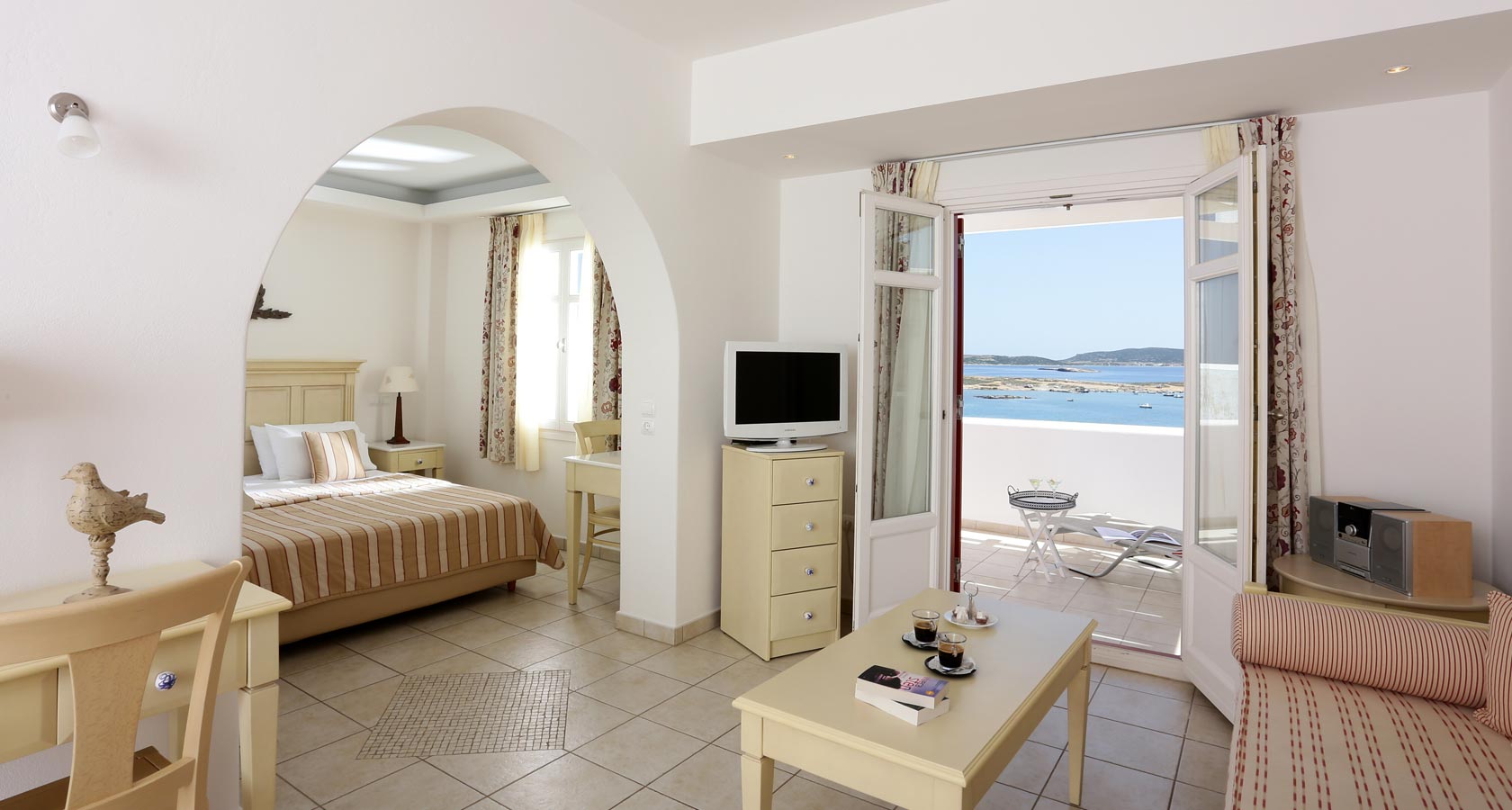 Our hotel is just 30 meters from the sandy Agioi Anargiroi beach and just 5 minutes walk from the cosmopolitan centre and port of Naousa. Therefore, this is your ideal accommodation choice if you are looking to combine serenity with buzzing nightlife and entertainment.
