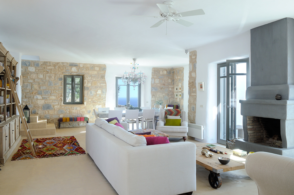 Feel like you are floating above the hillside on the poolside loungers, as you soak up the Grecian sun. There’s equal opportunity for shade under the protective pergola. Enjoy social gatherings around the outdoor lounge, ideal for a daytime refreshment break, or enjoying a moonlit nightcap. Take advantage of the balmy evenings for al fresco dinners with panoramic vistas – colorful sunsets come as a welcome bonus with dessert.