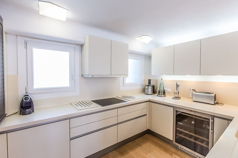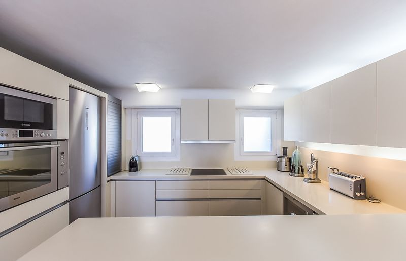 The indoor spaces of South Cove Dream have an ultra-modern vibe, employing a cutting-edge minimalist decor style and a color scheme of mainly white with hints of bright blue like the ever-present surrounding sea. The living room is alluring, adorned with high-end imported furniture and contemporary modern artworks. A fully equipped kitchen is designed to make mealtimes a breeze and has convenient French doors that open up to the terrace and alfresco dining area.