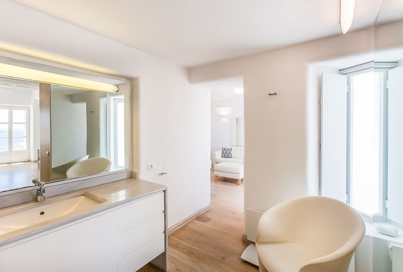 South Cove Dream is always kept in shipshape order with daily housekeeping service. The infinity swimming pool that seems to blend with the waters of the Aegean Sea is enriched by a surrounding terrace equipped with sunbeds and parasols as well as an electric awning, allowing guests to select their preferred amount of shade. The terrace also provides a furnished verandah, pergola, alfresco dining tables and a full bar that includes a sound system, making the terrace a scenic venue for an aperitif. Additionally, the villa has satellite television and Wi-Fi.