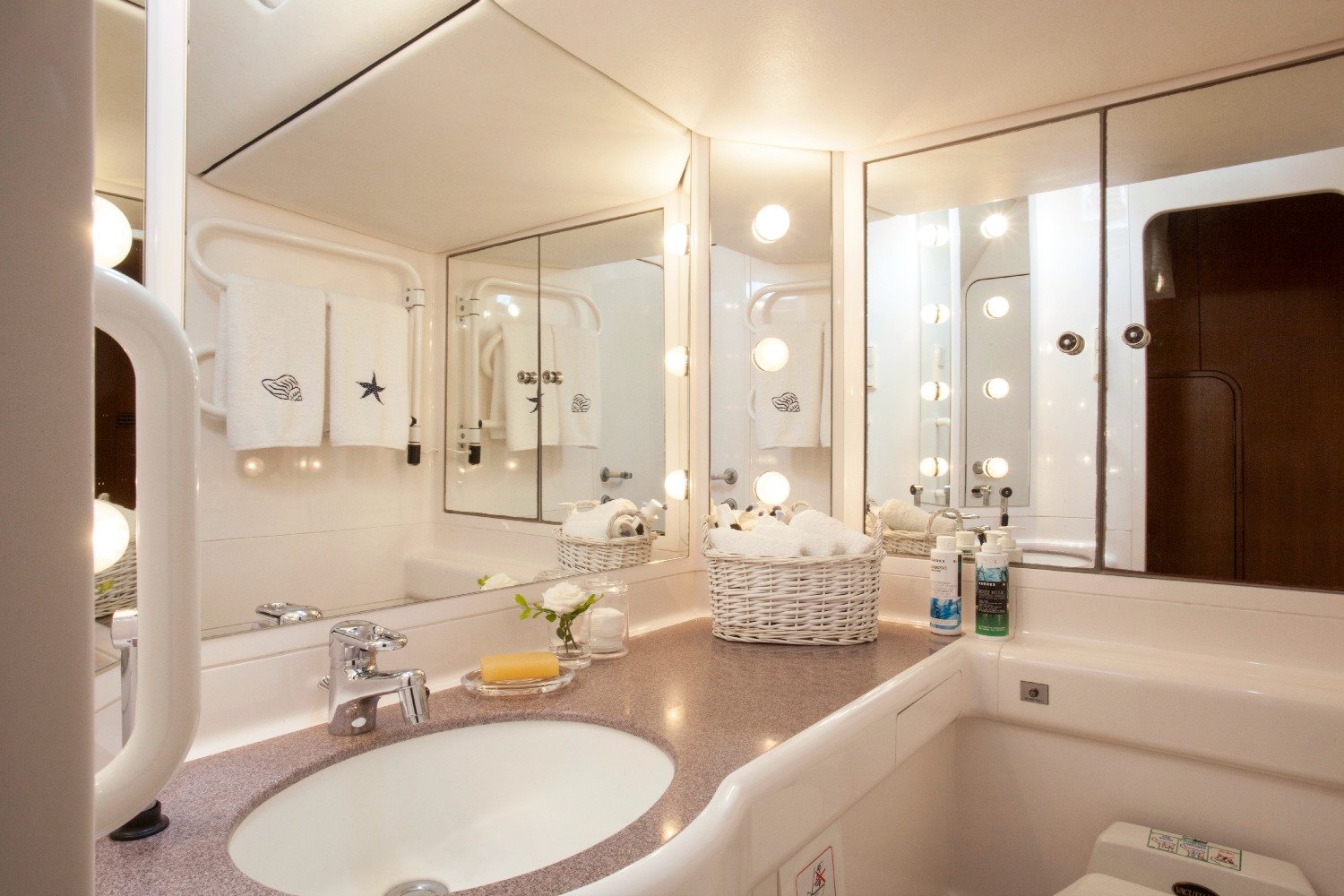 | Galley | Gas stove & oven , Electric fridge , Icebox , Deep freezer , Cuttlery - Kitchen equipment , Pans, plates, glasses, spoons, knifes, etc. , Microwave , Dishwasher |