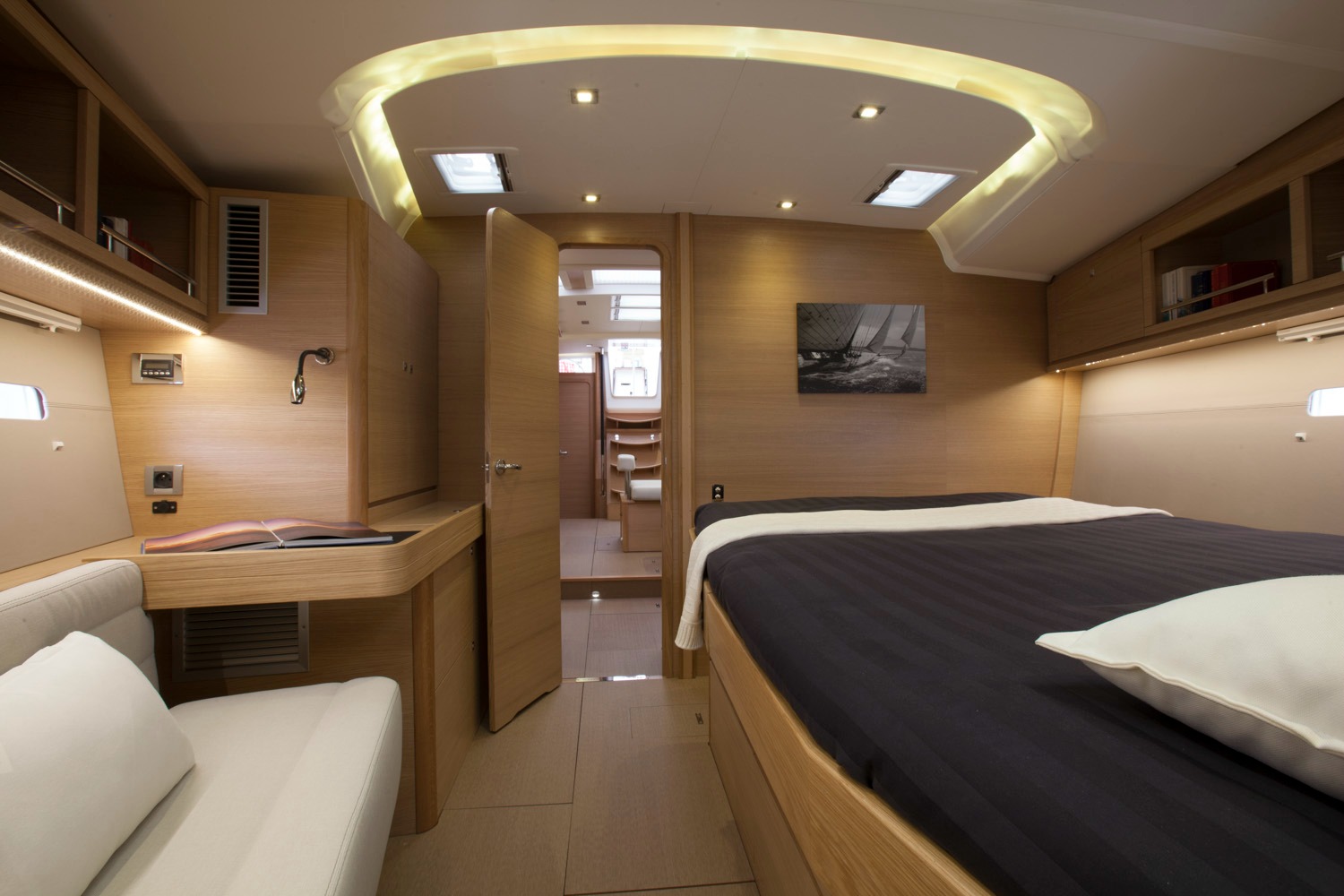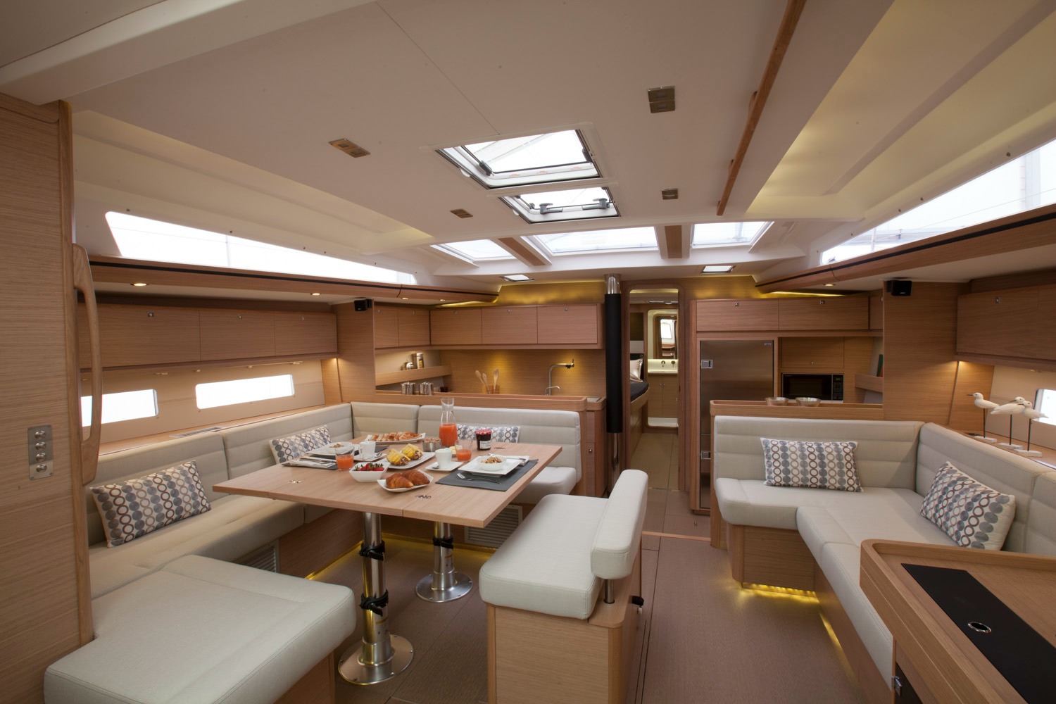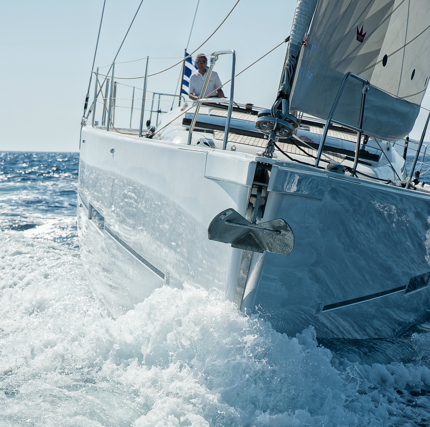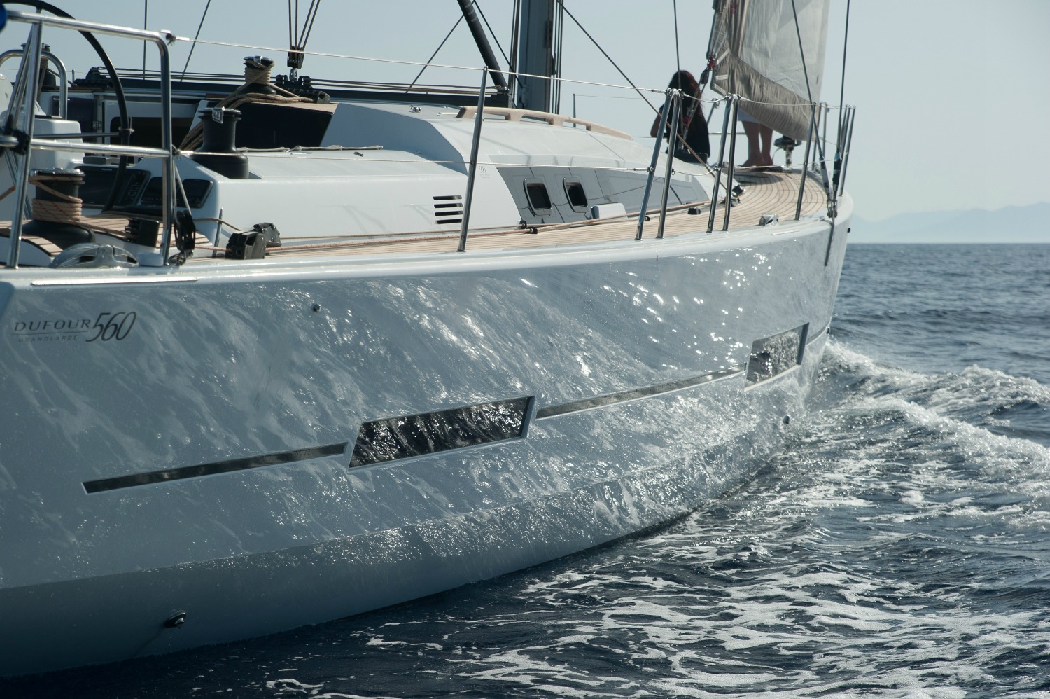 Our Mimosa, a Dufour 560, a sailing yacht available for skippered and crewed charters throughout Greece. With 3 cabins and 3 wc it is perfect for groups of 6 guests.