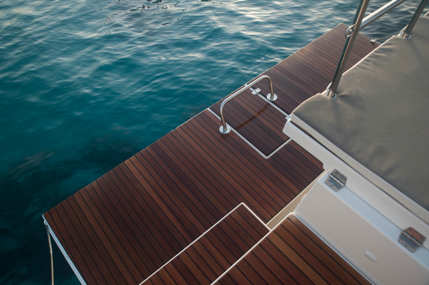 Deck & Cockpit equipment Anchor windlass electric , Main anchor-chain , Fenders , Hand bilge pump and handle , Gangway , Electric gangway , Swimming ladder , Door panels-keys , Boat hook , Winch handles , Dinghy, pump, oars , Outboard motor , Plastic bucket , Water Jerrycan , Diesel jerrycan , Engine oil , Fuel funnel , Deckbrush , Gas bottles , Spare Anchor , Mooring lines , Teak Deck , Cockpit table , Cockpit cushions