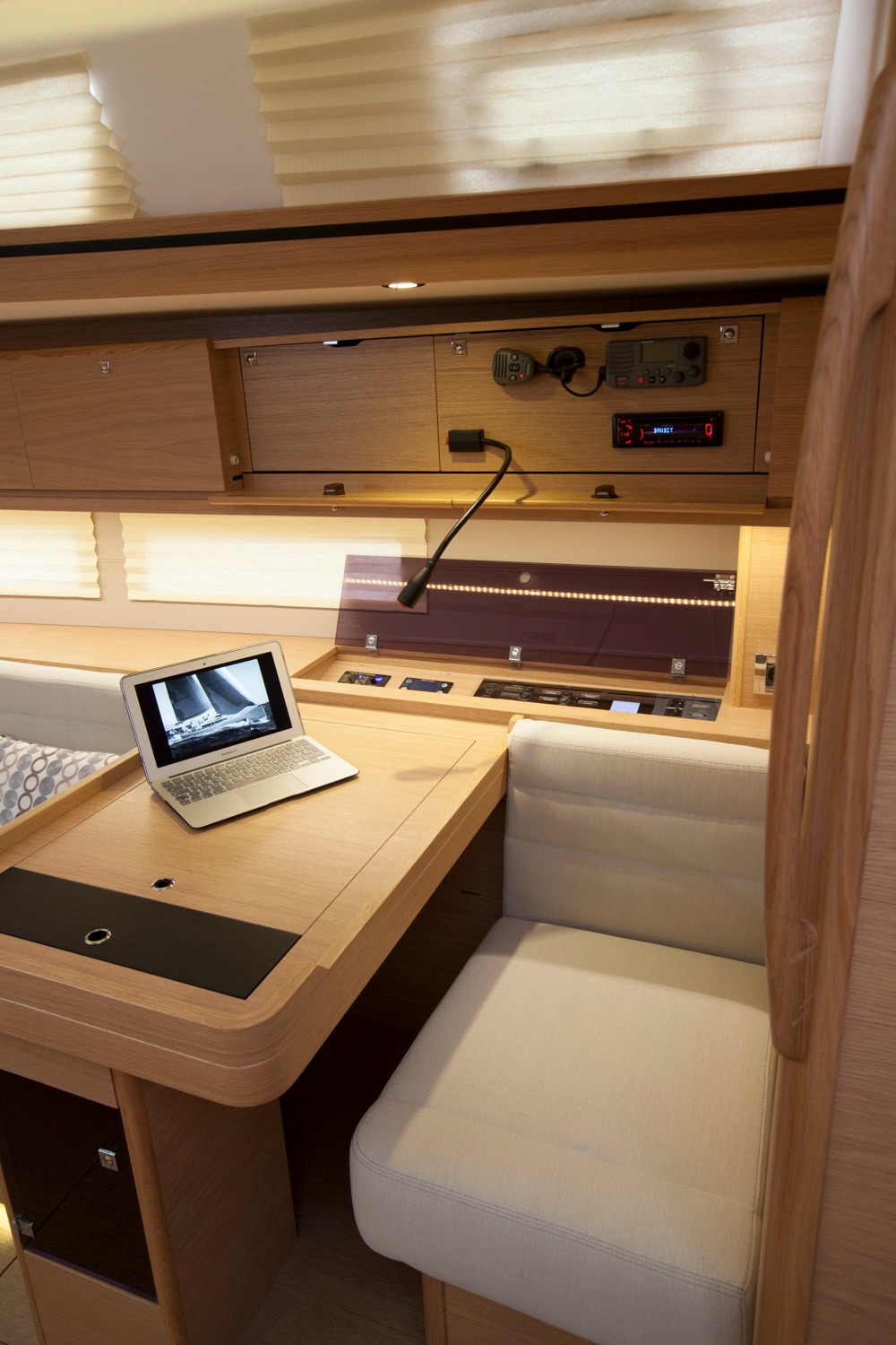 Navigation equipment Cockpit compass , Speed log , Echo sounder , Wind instruments , Hand bearing comp , Divider , Parallel ruler , Greek Waters Pilot , GPS , Plotter , Radar , VHF , Clock , Barometer , Binoculars , Autopilot