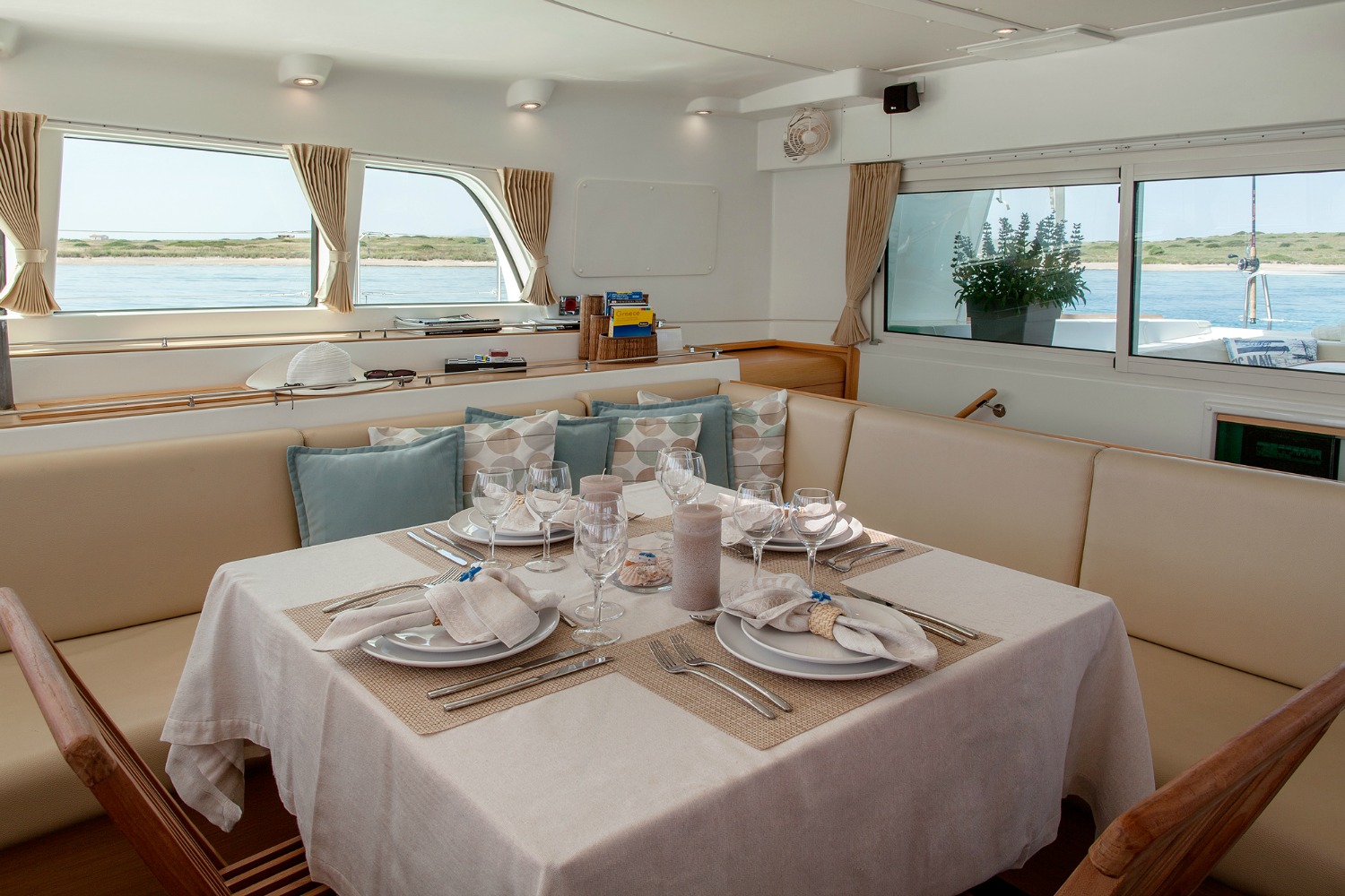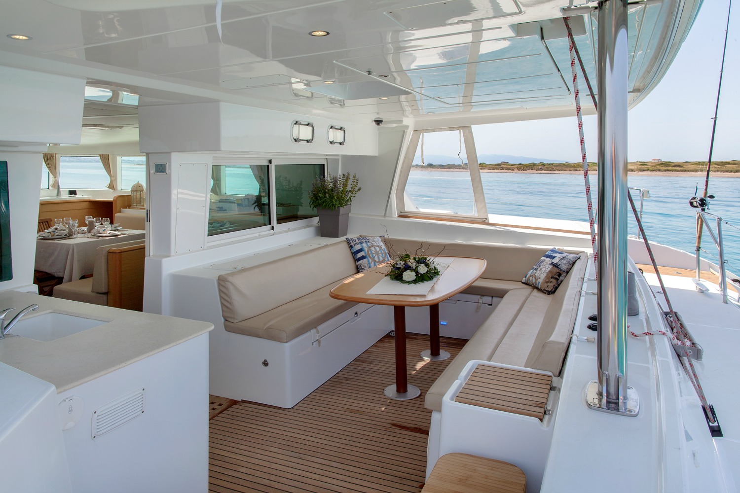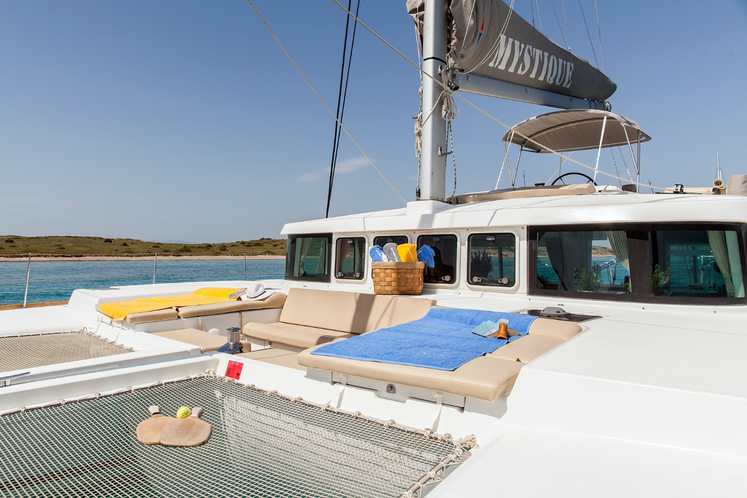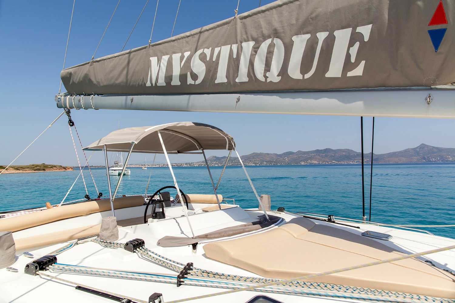 Our Mystique, a Lagoon 500, a catamaran available for crewed charters throughout Greece. With 5 cabins and 5 wc it is perfect for groups of 10 guests.