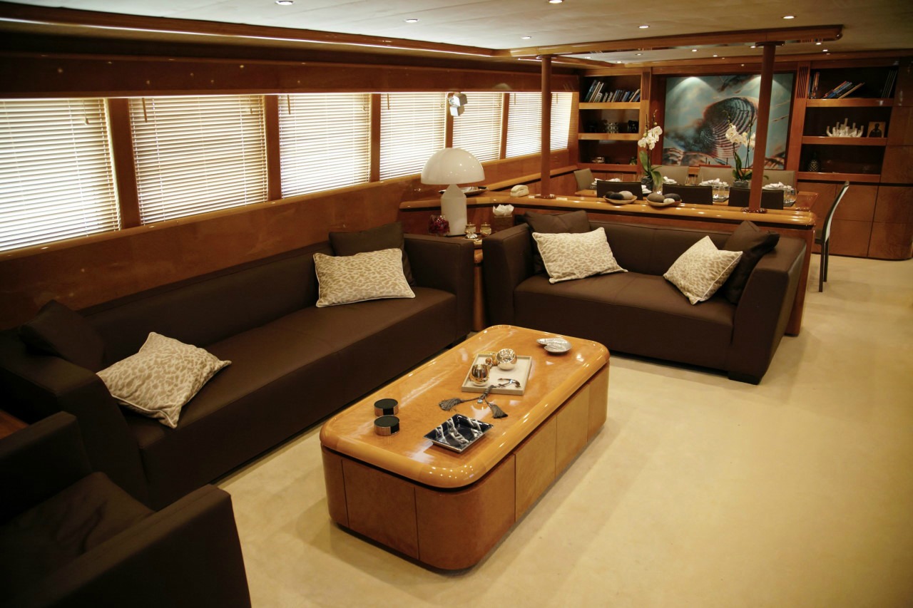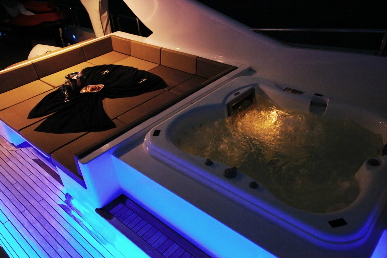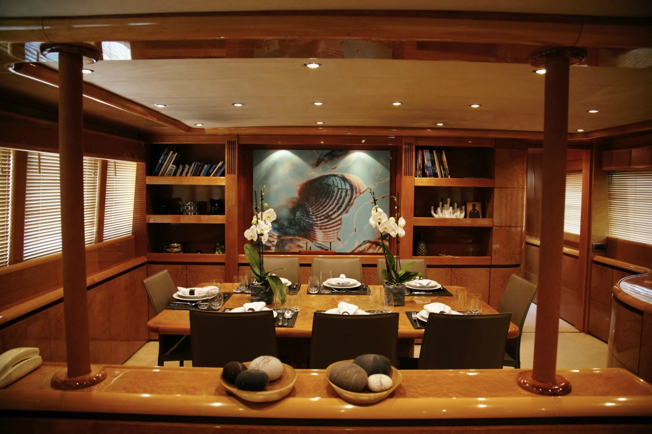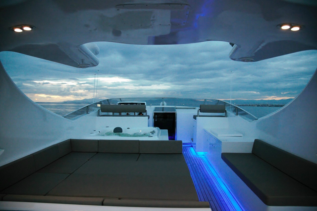 Our Project Steel, a Bugari 100, a motor yacht available for crewed charters throughout Greece. With 5 cabins and 5 wc it is perfect for larger group of 10 guests.