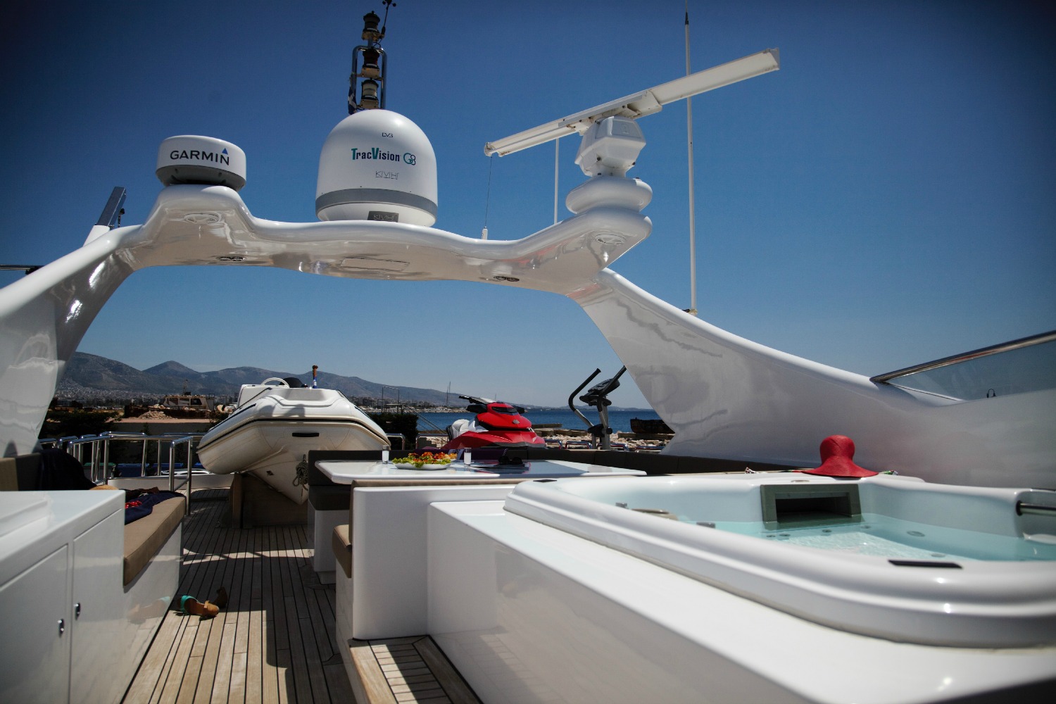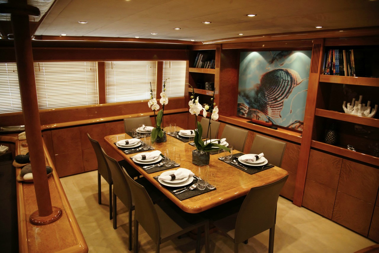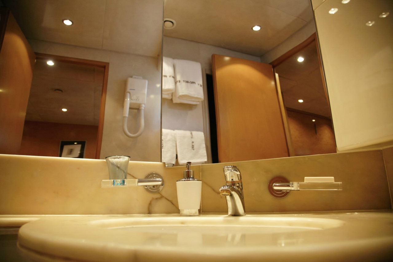 Our Project Steel, a Bugari 100, a motor yacht available for crewed charters throughout Greece. With 5 cabins and 5 wc it is perfect for larger group of 10 guests.