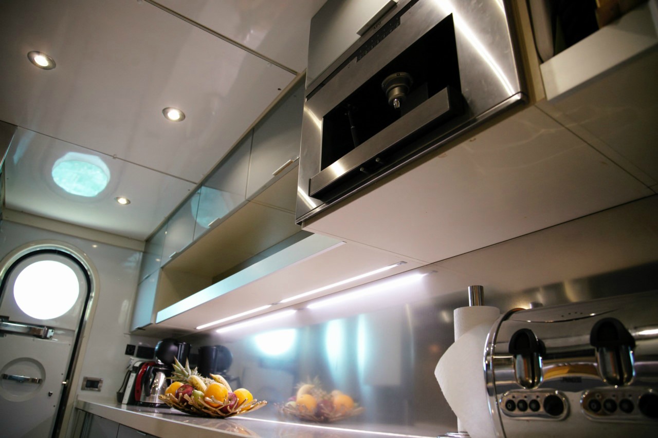 Galley Electric fridge , Cuttlery - Kitchen equipment , Pans, plates, glasses, spoons, knifes, etc.